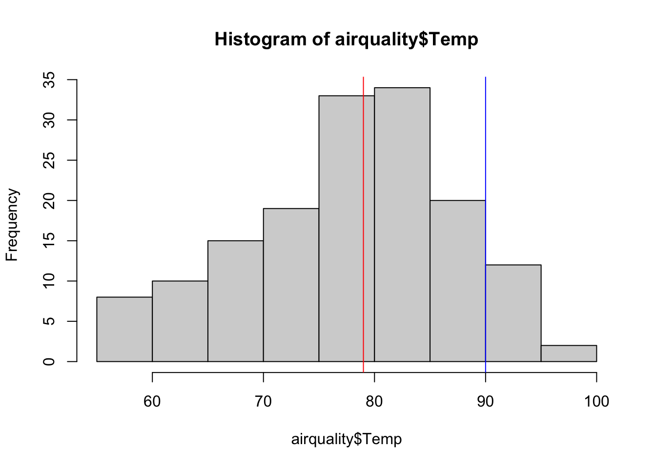 hist()to create a histogramabline()to add (vertical) lines to your histogram
