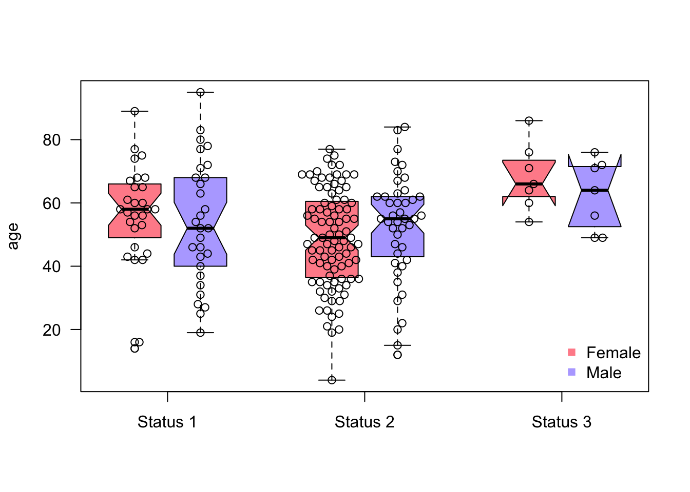 ## $ Age : int 27 29 30 32 46 58 59 59 63 63 ...